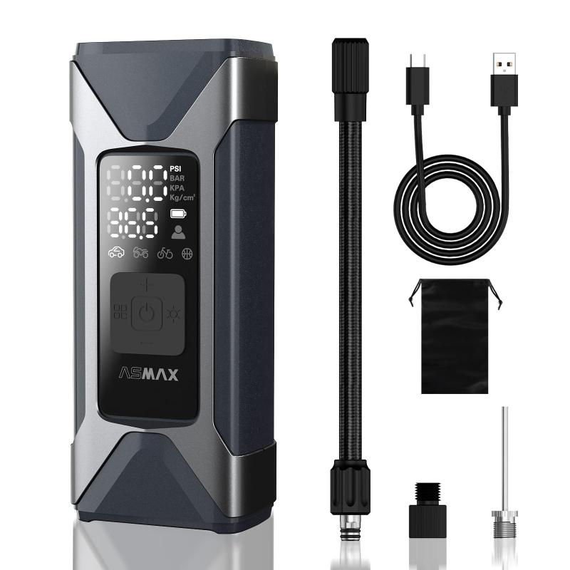 ASMAX 自転車 空気入れ 電動空気入れ バイク 車 エアーポンプ 2500mAh×3 大容量バッテリー 最大圧力160PSI タイヤ空気圧検知 50cmクイックリリースエアホース 自動停止 米式/仏式/英式 浮き輪バル